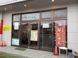 建物の外からも目を引く「バタークレープ がじゅん」の暖簾。